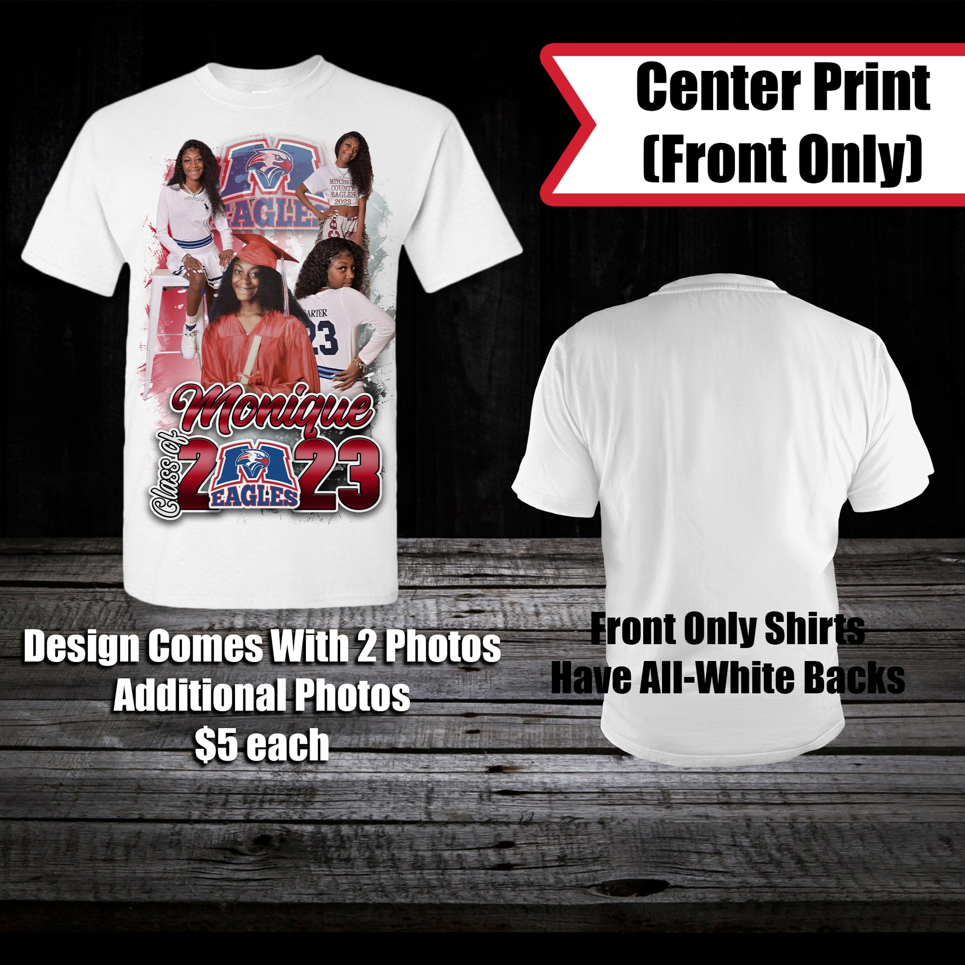 The design comes with 1 logo, Graduate Name, Class Year, and 2 photos. (The same two photos are used for both the stole and the t-shirt.)